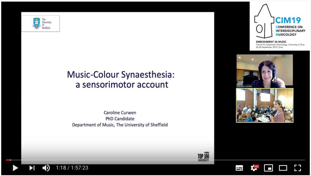 Curwen, C. (2022, June) Music-colour synaesthesia: Sensorimotor features and synaesthetic experience. Poster presented at the Conference on Interdisciplinary Musicology CIM22 “Participation in Music”. Edinburgh, UK.